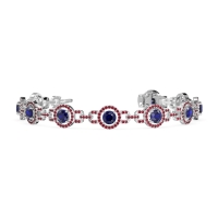 These Platinum bracelets feature fine quality Ruby gemstones. This Stylish Gemstone Bracelet Consists Of A Larger Gem Floating in Between A Halo Of Gems, Connected By Gemstone Links. Free shipping, returns, and a lifetime warranty make luxury worry-free
