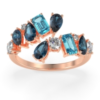This 18K Rose Gold London Blue Topaz wedding ring features gemstones, along with fine quality Swiss Blue Topaz and Diamond. We only use the top 10% of gemstones available. This women's ring can be worn as a London Blue Topaz wedding band, or even as an addition to your London Blue Topaz rings collection. This Trendy Band Showcases A Playful Mix Of Pear, Round, And Emerald-cut Stones Set in A Split Shank Design. This product comes with Free Shipping, Free Returns, Free Resize and a lifetime warranty. Choose from a variety of gems and metals to make a truly unique custom band!.