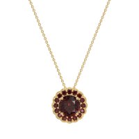 This Ruby Halo Necklace is casted in 14k Yellow Gold. We use only exceptionally fine gemstones, truly on par with those found in the world's most exclusive boutiques and representing the top 10% available globally. This Floral-inspired Halo Pendant Features A Prominent Round Center Stone Encircled By A Vintage-style Milgrain Halo, Creating A Charming, Antique Aesthetic. You'll get a complimentary 18-inch chain with every necklace. Plus, enjoy a 30-day, hassle-free return policy (we even cover return shipping!) and a Lifetime Warranty for peace of mind.