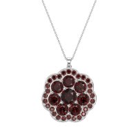 This Ruby and Garnet Necklace is casted in 14k White Gold. This Women’s Fashion necklace features exceptionally fine gemstones, on par with those found in the world's most exclusive boutiques and among the top 10% available globally. This Flower Pendant Showcases A Cluster Of Stones Meticulously Arranged To Form A Delicate Flower At Its Center. This Floral Core Is Then Embraced By An Outer Halo Also Crafted in A Graceful Flower Shape. This necklace comes with a complimentary 18-inch chain. Enjoy the confidence of our 30-day, stress-free return policy—with return shipping fully covered. Each piece is also accompanied by a Lifetime Warranty, ensuring lasting beauty and peace of mind.