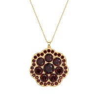 This Ruby Fashion Necklace is casted in 14k Yellow Gold. We use only exceptionally fine gemstones, truly on par with those found in the world's most exclusive boutiques and representing the top 10% available globally. This Flower Pendant Showcases A Cluster Of Stones Meticulously Arranged To Form A Delicate Flower At Its Center. This Floral Core Is Then Embraced By An Outer Halo Also Crafted in A Graceful Flower Shape. You'll get a complimentary 18-inch chain with every necklace. Plus, enjoy a 30-day, hassle-free return policy (we even cover return shipping!) and a Lifetime Warranty for peace of mind.