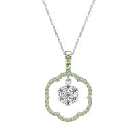This Lab Diamond and Peridot Necklace is casted in 14k White Gold. This Women’s Fashion necklace features exceptionally fine gemstones, on par with those found in the world's most exclusive boutiques and among the top 10% available globally. This Captivating Pendant Showcases A Flower-inspired Cluster Design At Its Center, Surrounded By A Prominent, Flower-like Halo. This necklace comes with a complimentary 18-inch chain. Enjoy the confidence of our 30-day, stress-free return policy—with return shipping fully covered. Each piece is also accompanied by a Lifetime Warranty, ensuring lasting beauty and peace of mind.