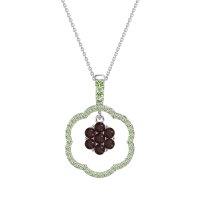 This Ruby and Peridot Necklace is casted in 14k White Gold. This Women’s Fashion necklace features exceptionally fine gemstones, on par with those found in the world's most exclusive boutiques and among the top 10% available globally. This Captivating Pendant Showcases A Flower-inspired Cluster Design At Its Center, Surrounded By A Prominent, Flower-like Halo. This necklace comes with a complimentary 18-inch chain. Enjoy the confidence of our 30-day, stress-free return policy—with return shipping fully covered. Each piece is also accompanied by a Lifetime Warranty, ensuring lasting beauty and peace of mind.