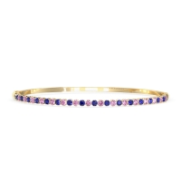 These 14k Yellow Gold bracelets feature fine quality Blue Sapphire gemstones. introducing The intrigue Bangle, A Captivating Piece That Combines The Security Of A Bezel Setting with The Brilliance-enhancing Qualities Of Four Delicate Prongs. This innovative Design Is Perfect For Those Who Crave Both Elegance And Peace Of Mind. Free shipping, returns, and a lifetime warranty make luxury worry-free