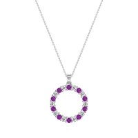 This Amethyst and Lab Diamond Necklace is casted in 14k White Gold. This Women’s Classic necklace features exceptionally fine gemstones, on par with those found in the world's most exclusive boutiques and among the top 10% available globally. Circular Pendant Fully Pavé-set with Numerous Small, Round Stones. A Dazzling And Versatile Piece That Catches The Light From Every Angle. This necklace comes with a complimentary 18-inch chain. Enjoy the confidence of our 30-day, stress-free return policy—with return shipping fully covered. Each piece is also accompanied by a Lifetime Warranty, ensuring lasting beauty and peace of mind.