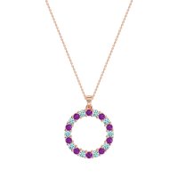 This Amethyst and Swiss Blue Topaz Necklace is casted in 14K Rose Gold. This Women’s Classic necklace features exceptionally fine gemstones, on par with those found in the world's most exclusive boutiques and among the top 10% available globally. Circular Pendant Fully Pavé-set with Numerous Small, Round Stones. A Dazzling And Versatile Piece That Catches The Light From Every Angle. This necklace comes with a complimentary 18-inch chain. Enjoy the confidence of our 30-day, stress-free return policy—with return shipping fully covered. Each piece is also accompanied by a Lifetime Warranty, ensuring lasting beauty and peace of mind.