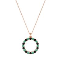 This Black Onyx and Emerald Necklace is casted in 14K Rose Gold. This Women’s Classic necklace features exceptionally fine gemstones, on par with those found in the world's most exclusive boutiques and among the top 10% available globally. Circular Pendant Fully Pavé-set with Numerous Small, Round Stones. A Dazzling And Versatile Piece That Catches The Light From Every Angle. This necklace comes with a complimentary 18-inch chain. Enjoy the confidence of our 30-day, stress-free return policy—with return shipping fully covered. Each piece is also accompanied by a Lifetime Warranty, ensuring lasting beauty and peace of mind.