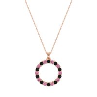 This Black Onyx and Pink Tourmaline Necklace is casted in 14K Rose Gold. This Women’s Classic necklace features exceptionally fine gemstones, on par with those found in the world's most exclusive boutiques and among the top 10% available globally. Circular Pendant Fully Pavé-set with Numerous Small, Round Stones. A Dazzling And Versatile Piece That Catches The Light From Every Angle. This necklace comes with a complimentary 18-inch chain. Enjoy the confidence of our 30-day, stress-free return policy—with return shipping fully covered. Each piece is also accompanied by a Lifetime Warranty, ensuring lasting beauty and peace of mind.