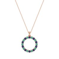 This Blue Sapphire and Emerald Necklace is casted in 14K Rose Gold. This Women’s Classic necklace features exceptionally fine gemstones, on par with those found in the world's most exclusive boutiques and among the top 10% available globally. Circular Pendant Fully Pavé-set with Numerous Small, Round Stones. A Dazzling And Versatile Piece That Catches The Light From Every Angle. This necklace comes with a complimentary 18-inch chain. Enjoy the confidence of our 30-day, stress-free return policy—with return shipping fully covered. Each piece is also accompanied by a Lifetime Warranty, ensuring lasting beauty and peace of mind.