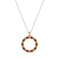 This Citrine and Ruby Necklace is casted in 14K Rose Gold. This Women’s Classic necklace features exceptionally fine gemstones, on par with those found in the world's most exclusive boutiques and among the top 10% available globally. Circular Pendant Fully Pavé-set with Numerous Small, Round Stones. A Dazzling And Versatile Piece That Catches The Light From Every Angle. This necklace comes with a complimentary 18-inch chain. Enjoy the confidence of our 30-day, stress-free return policy—with return shipping fully covered. Each piece is also accompanied by a Lifetime Warranty, ensuring lasting beauty and peace of mind.