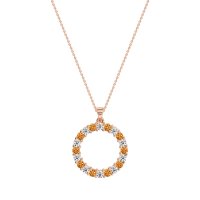 This Diamond and Citrine Necklace is casted in 14K Rose Gold. This Women’s Classic necklace features exceptionally fine gemstones, on par with those found in the world's most exclusive boutiques and among the top 10% available globally. Circular Pendant Fully Pavé-set with Numerous Small, Round Stones. A Dazzling And Versatile Piece That Catches The Light From Every Angle. This necklace comes with a complimentary 18-inch chain. Enjoy the confidence of our 30-day, stress-free return policy—with return shipping fully covered. Each piece is also accompanied by a Lifetime Warranty, ensuring lasting beauty and peace of mind.