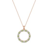 This Diamond and Peridot Necklace is casted in 14K Rose Gold. This Women’s Classic necklace features exceptionally fine gemstones, on par with those found in the world's most exclusive boutiques and among the top 10% available globally. Circular Pendant Fully Pavé-set with Numerous Small, Round Stones. A Dazzling And Versatile Piece That Catches The Light From Every Angle. This necklace comes with a complimentary 18-inch chain. Enjoy the confidence of our 30-day, stress-free return policy—with return shipping fully covered. Each piece is also accompanied by a Lifetime Warranty, ensuring lasting beauty and peace of mind.
