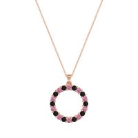 This Pink Tourmaline and Black Onyx Necklace is casted in 14K Rose Gold. This Women’s Classic necklace features exceptionally fine gemstones, on par with those found in the world's most exclusive boutiques and among the top 10% available globally. Circular Pendant Fully Pavé-set with Numerous Small, Round Stones. A Dazzling And Versatile Piece That Catches The Light From Every Angle. This necklace comes with a complimentary 18-inch chain. Enjoy the confidence of our 30-day, stress-free return policy—with return shipping fully covered. Each piece is also accompanied by a Lifetime Warranty, ensuring lasting beauty and peace of mind.