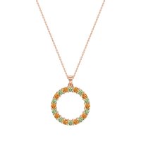 This Peridot and Citrine Necklace is casted in 14K Rose Gold. This Women’s Classic necklace features exceptionally fine gemstones, on par with those found in the world's most exclusive boutiques and among the top 10% available globally. Circular Pendant Fully Pavé-set with Numerous Small, Round Stones. A Dazzling And Versatile Piece That Catches The Light From Every Angle. This necklace comes with a complimentary 18-inch chain. Enjoy the confidence of our 30-day, stress-free return policy—with return shipping fully covered. Each piece is also accompanied by a Lifetime Warranty, ensuring lasting beauty and peace of mind.