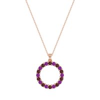 This Ruby and Amethyst Necklace is casted in 14K Rose Gold. This Women’s Classic necklace features exceptionally fine gemstones, on par with those found in the world's most exclusive boutiques and among the top 10% available globally. Circular Pendant Fully Pavé-set with Numerous Small, Round Stones. A Dazzling And Versatile Piece That Catches The Light From Every Angle. This necklace comes with a complimentary 18-inch chain. Enjoy the confidence of our 30-day, stress-free return policy—with return shipping fully covered. Each piece is also accompanied by a Lifetime Warranty, ensuring lasting beauty and peace of mind.