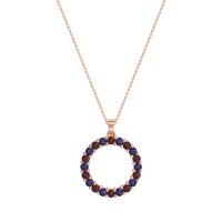 This Ruby and Blue Sapphire Necklace is casted in 14K Rose Gold. This Women’s Classic necklace features exceptionally fine gemstones, on par with those found in the world's most exclusive boutiques and among the top 10% available globally. Circular Pendant Fully Pavé-set with Numerous Small, Round Stones. A Dazzling And Versatile Piece That Catches The Light From Every Angle. This necklace comes with a complimentary 18-inch chain. Enjoy the confidence of our 30-day, stress-free return policy—with return shipping fully covered. Each piece is also accompanied by a Lifetime Warranty, ensuring lasting beauty and peace of mind.