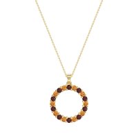This Ruby and Citrine Necklace is casted in 18k Yellow Gold. This Women’s Classic necklace features exceptionally fine gemstones, on par with those found in the world's most exclusive boutiques and among the top 10% available globally. Circular Pendant Fully Pavé-set with Numerous Small, Round Stones. A Dazzling And Versatile Piece That Catches The Light From Every Angle. This necklace comes with a complimentary 18-inch chain. Enjoy the confidence of our 30-day, stress-free return policy—with return shipping fully covered. Each piece is also accompanied by a Lifetime Warranty, ensuring lasting beauty and peace of mind.