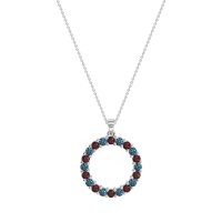 This Ruby and London Blue Topaz Necklace is casted in 18k White Gold. This Women’s Classic necklace features exceptionally fine gemstones, on par with those found in the world's most exclusive boutiques and among the top 10% available globally. Circular Pendant Fully Pavé-set with Numerous Small, Round Stones. A Dazzling And Versatile Piece That Catches The Light From Every Angle. This necklace comes with a complimentary 18-inch chain. Enjoy the confidence of our 30-day, stress-free return policy—with return shipping fully covered. Each piece is also accompanied by a Lifetime Warranty, ensuring lasting beauty and peace of mind.