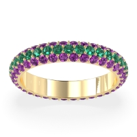 This Amethyst wedding ring is casted in 18k Yellow Gold and set with fine quality Amethyst and Emerald. All of the gemstones we use are of the top 10% available, those found in fine quality boutiques across the world. This Amethyst wedding band can also be added to your collection of minimalist Amethyst rings. This Dazzling Eternity Band Features A Continuous Row Of Gemstones Flanked By Smaller Stones, So All You See Is Dazzle. Free shipping, returns, resizing, and a lifetime warranty ensure you love your purchase.