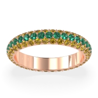 This Citrine wedding ring is casted in 14K Rose Gold and set with fine quality Citrine and Emerald. All of the gemstones we use are of the top 10% available, those found in fine quality boutiques across the world. This Citrine wedding band can also be added to your collection of minimalist Citrine rings. This Dazzling Eternity Band Features A Continuous Row Of Gemstones Flanked By Smaller Stones, So All You See Is Dazzle. Free shipping, returns, resizing, and a lifetime warranty ensure you love your purchase.