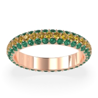 This Emerald wedding ring is casted in 14K Rose Gold and set with fine quality Emerald and Citrine. All of the gemstones we use are of the top 10% available, those found in fine quality boutiques across the world. This Emerald wedding band can also be added to your collection of minimalist Emerald rings. This Dazzling Eternity Band Features A Continuous Row Of Gemstones Flanked By Smaller Stones, So All You See Is Dazzle. Free shipping, returns, resizing, and a lifetime warranty ensure you love your purchase.