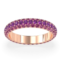 This Pink Tourmaline wedding ring is casted in 18K Rose Gold and set with fine quality Pink Tourmaline and Amethyst. All of the gemstones we use are of the top 10% available, those found in fine quality boutiques across the world. This Pink Tourmaline wedding band can also be added to your collection of minimalist Pink Tourmaline rings. This Dazzling Eternity Band Features A Continuous Row Of Gemstones Flanked By Smaller Stones, So All You See Is Dazzle. Free shipping, returns, resizing, and a lifetime warranty ensure you love your purchase.