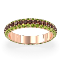 This Peridot wedding ring is casted in 18K Rose Gold and set with fine quality Peridot and Garnet. All of the gemstones we use are of the top 10% available, those found in fine quality boutiques across the world. This Peridot wedding band can also be added to your collection of minimalist Peridot rings. This Dazzling Eternity Band Features A Continuous Row Of Gemstones Flanked By Smaller Stones, So All You See Is Dazzle. Free shipping, returns, resizing, and a lifetime warranty ensure you love your purchase.