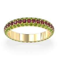This Peridot wedding ring is casted in 18k Yellow Gold and set with fine quality Peridot and Ruby. All of the gemstones we use are of the top 10% available, those found in fine quality boutiques across the world. This Peridot wedding band can also be added to your collection of minimalist Peridot rings. This Dazzling Eternity Band Features A Continuous Row Of Gemstones Flanked By Smaller Stones, So All You See Is Dazzle. Free shipping, returns, resizing, and a lifetime warranty ensure you love your purchase.