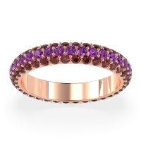 This Ruby wedding ring is casted in 14K Rose Gold and set with fine quality Ruby and Amethyst. All of the gemstones we use are of the top 10% available, those found in fine quality boutiques across the world. This Ruby wedding band can also be added to your collection of minimalist Ruby rings. This Dazzling Eternity Band Features A Continuous Row Of Gemstones Flanked By Smaller Stones, So All You See Is Dazzle. Free shipping, returns, resizing, and a lifetime warranty ensure you love your purchase.