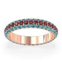 This Swiss Blue Topaz wedding ring is casted in 18K Rose Gold and set with fine quality Swiss Blue Topaz and Ruby. All of the gemstones we use are of the top 10% available, those found in fine quality boutiques across the world. This Swiss Blue Topaz wedding band can also be added to your collection of minimalist Swiss Blue Topaz rings. This Dazzling Eternity Band Features A Continuous Row Of Gemstones Flanked By Smaller Stones, So All You See Is Dazzle. Free shipping, returns, resizing, and a lifetime warranty ensure you love your purchase.
