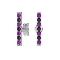 These Amethyst earrings and made in 14k White Gold with top quality Natural Amethyst and Black Onyx gemstones. Minimalist Yet Captivating, These Petite Bar Stud Earrings Feature A Sleek Line Of Shimmering Gemstones. Designed For Effortless Elegance, They Add A Touch Of Refined Sparkle To Any Look. Free shipping, returns, and a lifetime warranty make luxury worry-free