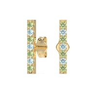 These Peridot earrings and made in 18k Yellow Gold with top quality Natural Peridot and Swiss Blue Topaz gemstones. Minimalist Yet Captivating, These Petite Bar Stud Earrings Feature A Sleek Line Of Shimmering Gemstones. Designed For Effortless Elegance, They Add A Touch Of Refined Sparkle To Any Look. Free shipping, returns, and a lifetime warranty make luxury worry-free