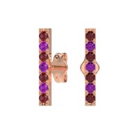 These Ruby earrings and made in 18K Rose Gold with top quality Natural Ruby and Amethyst gemstones. Minimalist Yet Captivating, These Petite Bar Stud Earrings Feature A Sleek Line Of Shimmering Gemstones. Designed For Effortless Elegance, They Add A Touch Of Refined Sparkle To Any Look. Free shipping, returns, and a lifetime warranty make luxury worry-free