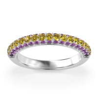 This Amethyst wedding ring is casted in Palladium and set with fine quality Amethyst and Citrine. All of the gemstones we use are of the top 10% available, those found in fine quality boutiques across the world. This Amethyst wedding band can also be added to your collection of minimalist Amethyst rings. This Wedding Band Showcases A Trio Of Gemstone Rows Extending Halfway Down The Shank. Free shipping, returns, resizing, and a lifetime warranty ensure you love your purchase.