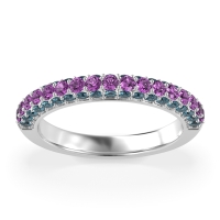 This London Blue Topaz wedding ring is casted in 14k White Gold and set with fine quality London Blue Topaz and Amethyst. All of the gemstones we use are of the top 10% available, those found in fine quality boutiques across the world. This London Blue Topaz wedding band can also be added to your collection of minimalist London Blue Topaz rings. This Wedding Band Showcases A Trio Of Gemstone Rows Extending Halfway Down The Shank. Free shipping, returns, resizing, and a lifetime warranty ensure you love your purchase.
