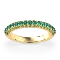 This Peridot wedding ring is casted in 14k Yellow Gold and set with fine quality Peridot and Emerald. All of the gemstones we use are of the top 10% available, those found in fine quality boutiques across the world. This Peridot wedding band can also be added to your collection of minimalist Peridot rings. This Wedding Band Showcases A Trio Of Gemstone Rows Extending Halfway Down The Shank. Free shipping, returns, resizing, and a lifetime warranty ensure you love your purchase.