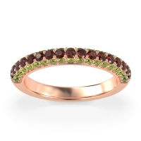 This Peridot wedding ring is casted in 14K Rose Gold and set with fine quality Peridot and Garnet. All of the gemstones we use are of the top 10% available, those found in fine quality boutiques across the world. This Peridot wedding band can also be added to your collection of minimalist Peridot rings. This Wedding Band Showcases A Trio Of Gemstone Rows Extending Halfway Down The Shank. Free shipping, returns, resizing, and a lifetime warranty ensure you love your purchase.