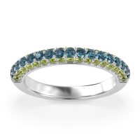 This Peridot wedding ring is casted in 14k White Gold and set with fine quality Peridot and London Blue Topaz. All of the gemstones we use are of the top 10% available, those found in fine quality boutiques across the world. This Peridot wedding band can also be added to your collection of minimalist Peridot rings. This Wedding Band Showcases A Trio Of Gemstone Rows Extending Halfway Down The Shank. Free shipping, returns, resizing, and a lifetime warranty ensure you love your purchase.