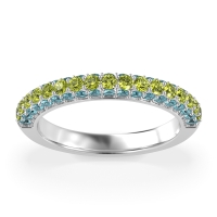 This Swiss Blue Topaz wedding ring is casted in 18k White Gold and set with fine quality Swiss Blue Topaz and Peridot. All of the gemstones we use are of the top 10% available, those found in fine quality boutiques across the world. This Swiss Blue Topaz wedding band can also be added to your collection of minimalist Swiss Blue Topaz rings. This Wedding Band Showcases A Trio Of Gemstone Rows Extending Halfway Down The Shank. Free shipping, returns, resizing, and a lifetime warranty ensure you love your purchase.