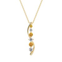 This Citrine and Lab Diamond Necklace is casted in 14k Yellow Gold. This Women’s Classic necklace features exceptionally fine gemstones, on par with those found in the world's most exclusive boutiques and among the top 10% available globally. This Straight Line Pendant with Curved Outline Features A Graduated Series Of Round Stones. A Modern And Elegant Design That Gracefully Adorns The Neckline. This necklace comes with a complimentary 18-inch chain. Enjoy the confidence of our 30-day, stress-free return policy—with return shipping fully covered. Each piece is also accompanied by a Lifetime Warranty, ensuring lasting beauty and peace of mind.