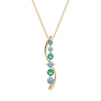 This Emerald and Aquamarine Necklace is casted in 14k Yellow Gold. This Women’s Classic necklace features exceptionally fine gemstones, on par with those found in the world's most exclusive boutiques and among the top 10% available globally. This Straight Line Pendant with Curved Outline Features A Graduated Series Of Round Stones. A Modern And Elegant Design That Gracefully Adorns The Neckline. This necklace comes with a complimentary 18-inch chain. Enjoy the confidence of our 30-day, stress-free return policy—with return shipping fully covered. Each piece is also accompanied by a Lifetime Warranty, ensuring lasting beauty and peace of mind.