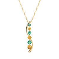 This Emerald and Citrine Necklace is casted in 14k Yellow Gold. This Women’s Classic necklace features exceptionally fine gemstones, on par with those found in the world's most exclusive boutiques and among the top 10% available globally. This Straight Line Pendant with Curved Outline Features A Graduated Series Of Round Stones. A Modern And Elegant Design That Gracefully Adorns The Neckline. This necklace comes with a complimentary 18-inch chain. Enjoy the confidence of our 30-day, stress-free return policy—with return shipping fully covered. Each piece is also accompanied by a Lifetime Warranty, ensuring lasting beauty and peace of mind.
