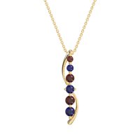 This Garnet and Blue Sapphire Necklace is casted in 14k Yellow Gold. This Women’s Classic necklace features exceptionally fine gemstones, on par with those found in the world's most exclusive boutiques and among the top 10% available globally. This Straight Line Pendant with Curved Outline Features A Graduated Series Of Round Stones. A Modern And Elegant Design That Gracefully Adorns The Neckline. This necklace comes with a complimentary 18-inch chain. Enjoy the confidence of our 30-day, stress-free return policy—with return shipping fully covered. Each piece is also accompanied by a Lifetime Warranty, ensuring lasting beauty and peace of mind.