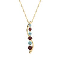 This Swiss Blue Topaz and Ruby Necklace is casted in 14k Yellow Gold. This Women’s Classic necklace features exceptionally fine gemstones, on par with those found in the world's most exclusive boutiques and among the top 10% available globally. This Straight Line Pendant with Curved Outline Features A Graduated Series Of Round Stones. A Modern And Elegant Design That Gracefully Adorns The Neckline. This necklace comes with a complimentary 18-inch chain. Enjoy the confidence of our 30-day, stress-free return policy—with return shipping fully covered. Each piece is also accompanied by a Lifetime Warranty, ensuring lasting beauty and peace of mind.