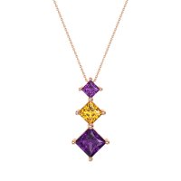 This Amethyst and Citrine Necklace is casted in 14K Rose Gold. This Women’s Classic necklace features exceptionally fine gemstones, on par with those found in the world's most exclusive boutiques and among the top 10% available globally. Striking Vertical Pendant Featuring Three Princess Square-cut Stones Graduating in Size. A Modern And Geometric Design That Adds A Touch Of Contemporary Elegance. This necklace comes with a complimentary 18-inch chain. Enjoy the confidence of our 30-day, stress-free return policy—with return shipping fully covered. Each piece is also accompanied by a Lifetime Warranty, ensuring lasting beauty and peace of mind.