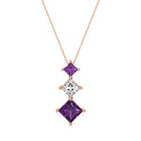 This Amethyst and Lab Diamond Necklace is casted in 14K Rose Gold. This Women’s Classic necklace features exceptionally fine gemstones, on par with those found in the world's most exclusive boutiques and among the top 10% available globally. Striking Vertical Pendant Featuring Three Princess Square-cut Stones Graduating in Size. A Modern And Geometric Design That Adds A Touch Of Contemporary Elegance. This necklace comes with a complimentary 18-inch chain. Enjoy the confidence of our 30-day, stress-free return policy—with return shipping fully covered. Each piece is also accompanied by a Lifetime Warranty, ensuring lasting beauty and peace of mind.