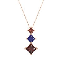 This Garnet and Blue Sapphire Necklace is casted in 14K Rose Gold. This Women’s Classic necklace features exceptionally fine gemstones, on par with those found in the world's most exclusive boutiques and among the top 10% available globally. Striking Vertical Pendant Featuring Three Princess Square-cut Stones Graduating in Size. A Modern And Geometric Design That Adds A Touch Of Contemporary Elegance. This necklace comes with a complimentary 18-inch chain. Enjoy the confidence of our 30-day, stress-free return policy—with return shipping fully covered. Each piece is also accompanied by a Lifetime Warranty, ensuring lasting beauty and peace of mind.