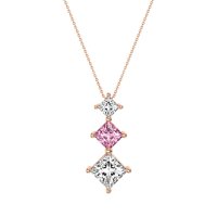 This Lab Diamond and Pink Tourmaline Necklace is casted in 14K Rose Gold. This Women’s Classic necklace features exceptionally fine gemstones, on par with those found in the world's most exclusive boutiques and among the top 10% available globally. Striking Vertical Pendant Featuring Three Princess Square-cut Stones Graduating in Size. A Modern And Geometric Design That Adds A Touch Of Contemporary Elegance. This necklace comes with a complimentary 18-inch chain. Enjoy the confidence of our 30-day, stress-free return policy—with return shipping fully covered. Each piece is also accompanied by a Lifetime Warranty, ensuring lasting beauty and peace of mind.