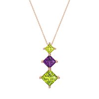 This Peridot and Amethyst Necklace is casted in 14K Rose Gold. This Women’s Classic necklace features exceptionally fine gemstones, on par with those found in the world's most exclusive boutiques and among the top 10% available globally. Striking Vertical Pendant Featuring Three Princess Square-cut Stones Graduating in Size. A Modern And Geometric Design That Adds A Touch Of Contemporary Elegance. This necklace comes with a complimentary 18-inch chain. Enjoy the confidence of our 30-day, stress-free return policy—with return shipping fully covered. Each piece is also accompanied by a Lifetime Warranty, ensuring lasting beauty and peace of mind.