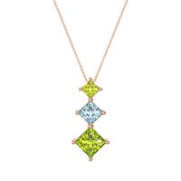 This Peridot and Aquamarine Necklace is casted in 14K Rose Gold. This Women’s Classic necklace features exceptionally fine gemstones, on par with those found in the world's most exclusive boutiques and among the top 10% available globally. Striking Vertical Pendant Featuring Three Princess Square-cut Stones Graduating in Size. A Modern And Geometric Design That Adds A Touch Of Contemporary Elegance. This necklace comes with a complimentary 18-inch chain. Enjoy the confidence of our 30-day, stress-free return policy—with return shipping fully covered. Each piece is also accompanied by a Lifetime Warranty, ensuring lasting beauty and peace of mind.